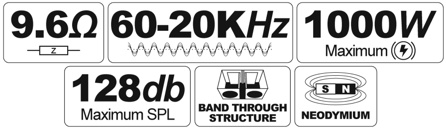 công suất cực đại 1000W tại độ nhạy 128db