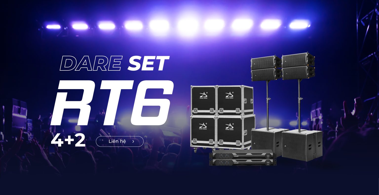 Giải pháp âm thanh chuyên nghiệp tối ưu cho không gian có sức chứa từ 3000 người. Set Loa Dare RT6 (4+2) sở hữu chất âm sống động từ Loa Array VA20 và Loa Sub BS21. Cùng công suất cực đại ấn tượng 21.600W, RT6 (4+2) là dàn loa chuyên nghiệp hứa hẹn mang đến trải nghiệm sống động cho người nghe. Không gian phù hợp với set RT6 (4+2) được Dare Audio khuyên dùng bao gồm: Nhà hát, sân khấu trong nhà, khán phòng lớn và hệ thống bar pub club quy mô vừa và lớn.